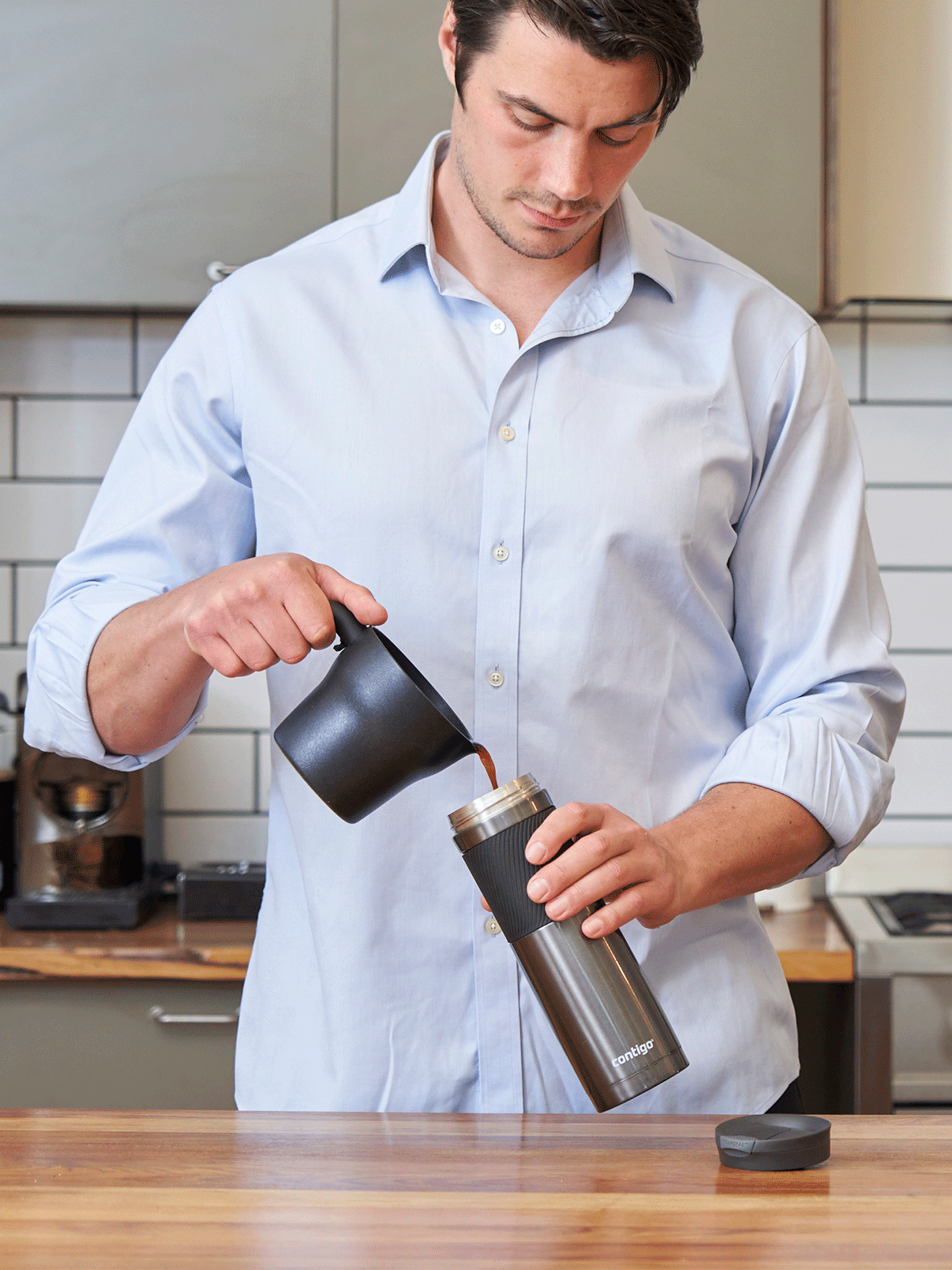 Une matinée fraîche ne vous permet pas de prendre un café tranquille à la maison ? Pas de problème ! Tasses Contigo Byron viendront à votre rescousse. Versez-y votre boisson chaude préférée et, même 9 heures plus tard, vous pourrez la déguster à haute température.