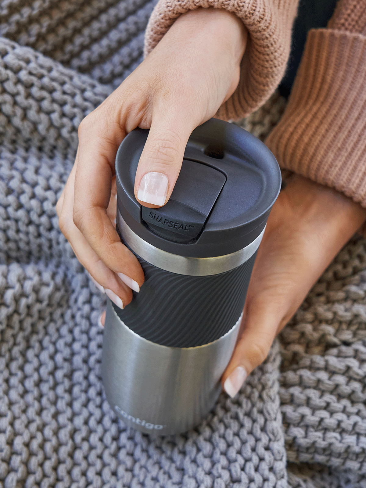 Vous prenez une tasse à la hâte. Ou vous voulez boire votre café confortablement lorsque vous avez des gants sur les mains. Dans aucune de ces situations mug thermique Contigo Byron ne vous échappera pas des mains. En effet, le corps du gobelet est recouvert d'une large couche antidérapante, ce qui facilite grandement la prise en main du gobelet..