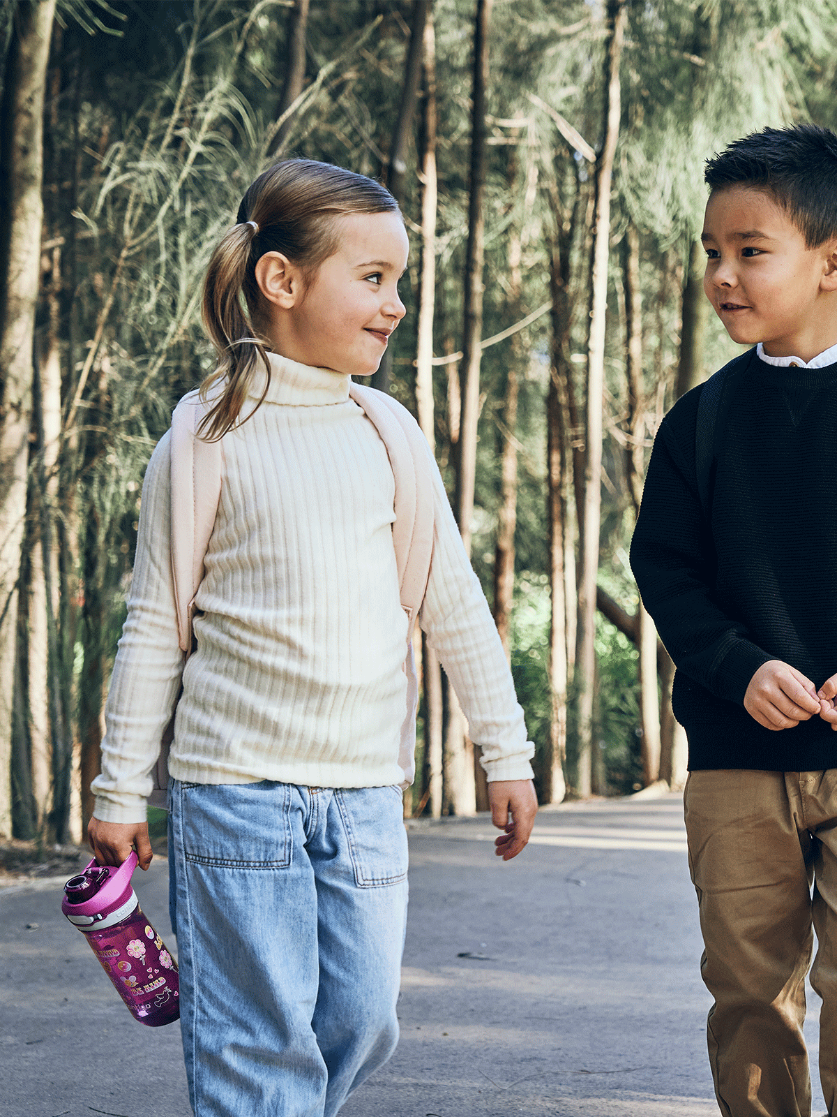 Ouvrez, verrouillez, adorez ! La bouteille d'eau Jessie est idéale pour les enfants qui ont déjà abandonné les bouteilles avec paille et sont prêts pour une bouteille avec une ouverture plus large. Elle a des couleurs et des fonctionnalités amusantes que les enfants adorent, ainsi qu'une structure étanche, facile à nettoyer et lavable au lave-vaisselle, appréciée également par les parents occupés.