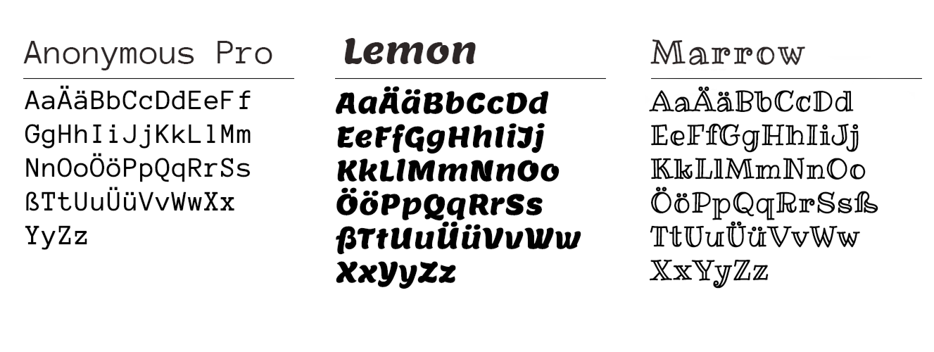Das Produktfoto zeigt die Schriftarten. Der Name wird in der Mitte des Körpers eingraviert.
