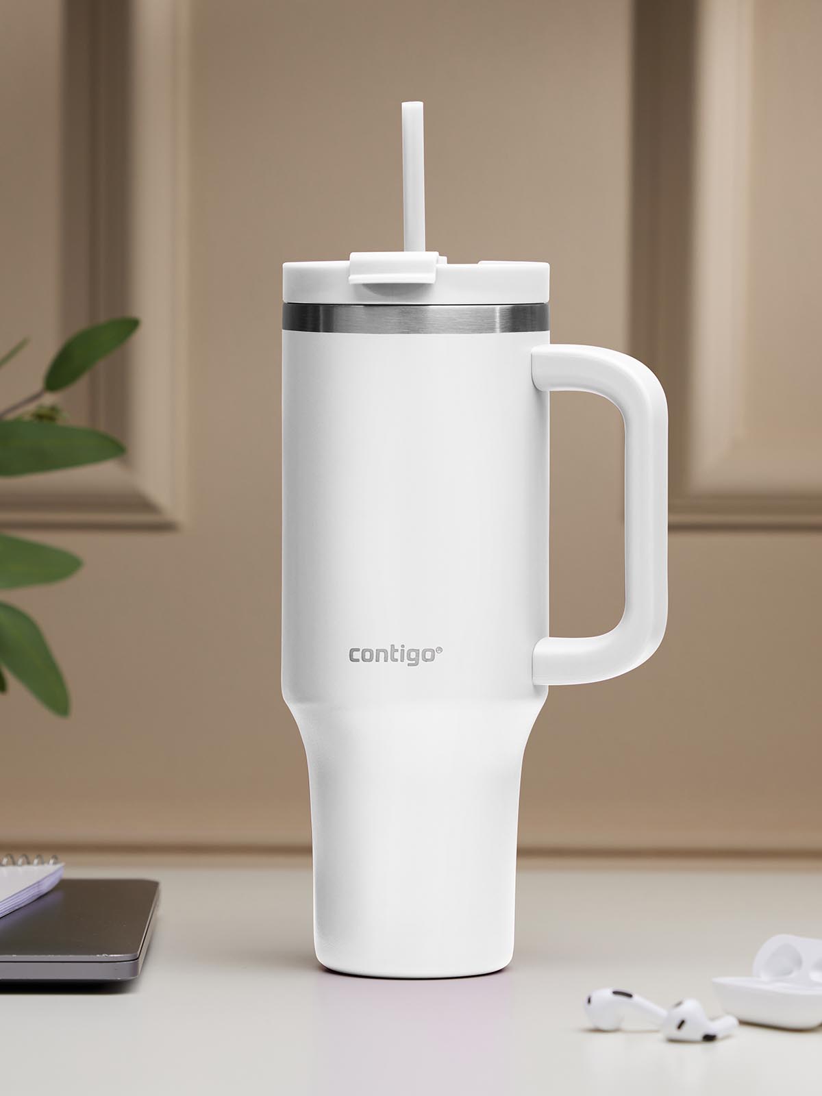 Halte dein Getränk frisch mit dem neuen Contigo Tumbler mit 1200 ml Fassungsvermögen. Der Becher mit Strohhalm ist aus hochwertigem, vakuumisoliertem Edelstahl mit doppelwandiger ThermaLock-Isolierung gefertigt und hält die Temperatur beeindruckende bis zu 29 Stunden.