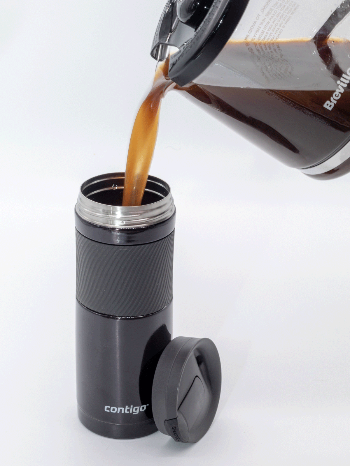 ¿El "negrito" no es lo suyo? En cambio, ¿prefiere un café robusto y grande que disfrutará durante horas? Tazas térmicas Contigo Byron están hechos para usted. Tienen una capacidad de 590 ml. Es decir, contienen exactamente tanta bebida como la que se vierte en dos tazas clásicas.